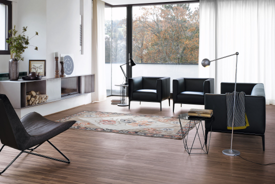 Der Jaan 780 Sessel, entworfen von EOOS für Walter Knoll, lebt von einem scheinbaren Widerspruch: Die kompakte, klar konturierte Kubatur ruht auf filigranen, hohen Aluminiumfüssen – ein Spiel aus Schwere und Leichtigkeit, das dem Sessel eine unverwechselbare Präsenz gibt. Besondere Sorgfalt erhielt die Feinform: Die präzise Kappnaht definiert die Polsteroberfläche klar und zeugt von sorgfältiger handwerklicher Verarbeitung. Die Holzkonstruktion mit Wellenfederung trägt Sitz- und Rückenkissen aus Kaltschaum im Sandwichaufbau mit Watteabdeckung. Die Aluminiumfüsse sind hochglanzpoliert oder matt-pulverbeschichtet erhältlich.