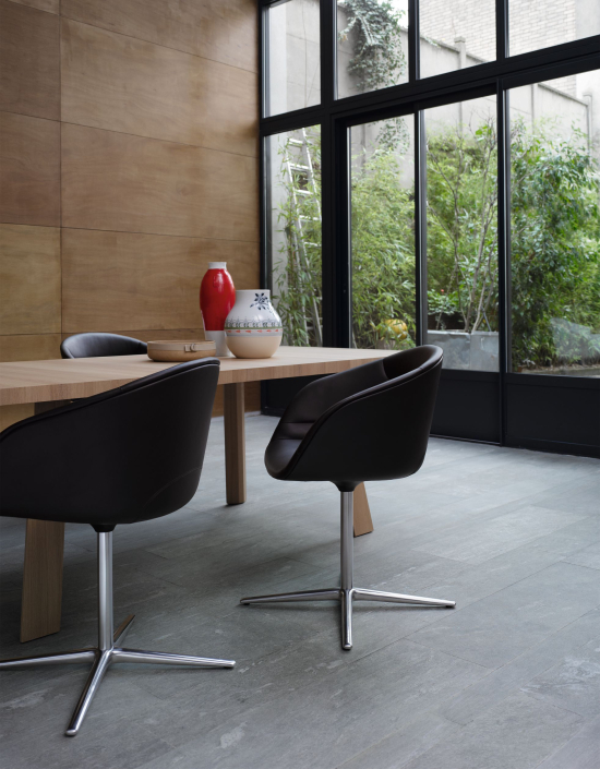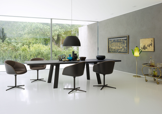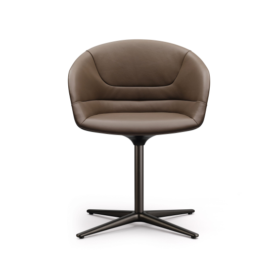 | Gestell | 4-Fuss-Kreuz mit Gleitern, drehbar, mit Gasfeder in Aluminium: poliert, matt-pulverbeschichtet schwarz, matt-pulverbeschichtet bronze |