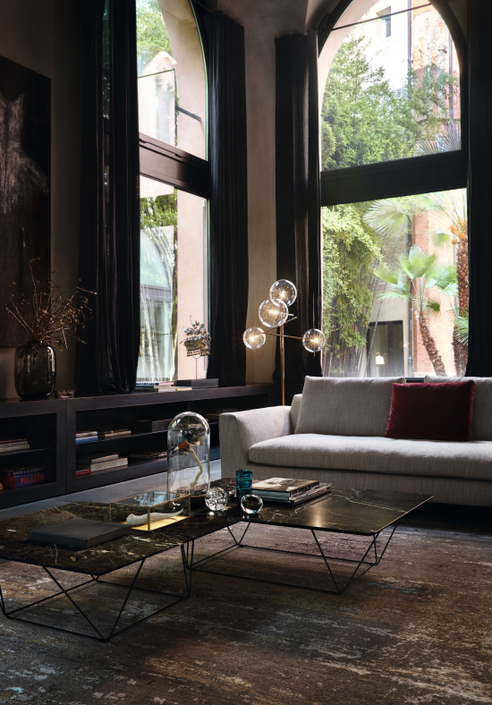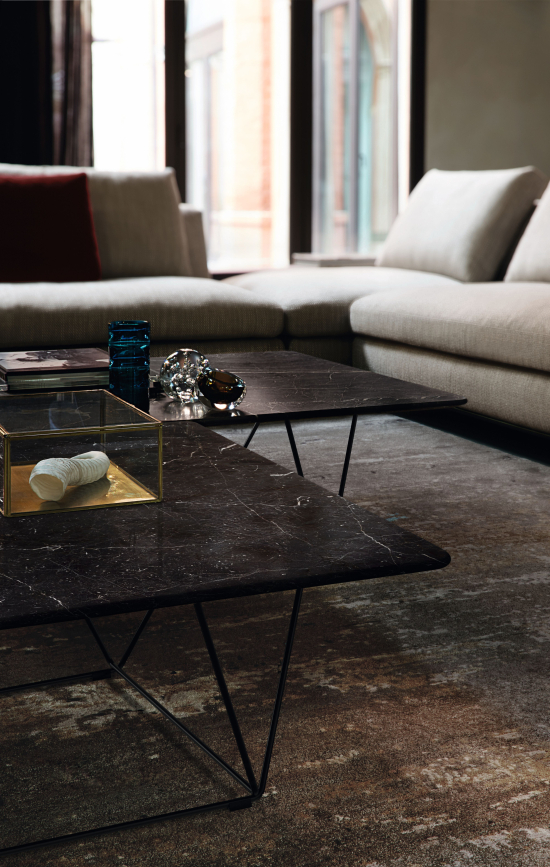 Der Oki Stone Table wurde von EOOS für Walter Knoll entworfen und bringt die Materialität von Marmor in das filigrane Oki-Tischprogramm. Die grossen Natursteinplatten – mit ihrer organischen Aderung aus weissen, braunen oder schwarzen Marmorarten – scheinen auf dem schlanken Stahlgestell zu schweben. Da jede Platte ein Naturprodukt ist, trägt jeder Tisch eine eigene Zeichnung und wird so zum individuellen Einzelstück. Der Stone Table steht in fünf Grössen zur Verfügung und eignet sich als Couchtisch für grosszügige Wohn- und Empfangsbereiche.