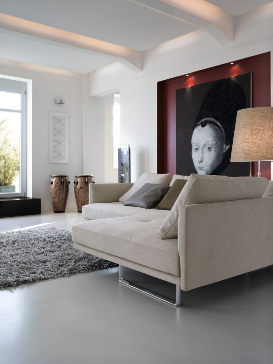 Das Prime Time Sofa wurde von EOOS für Walter Knoll entworfen und lebt von einem bewussten Widerspruch: Die grossen, weichen Sitzkissen scheinen optisch zu schweben, gehalten von einer schmalen Arm- und Rückenlehne, die sich diskret dahinter zurückzieht. Das Programm bietet eine breite Auswahl an Konfigurationen – von der geraden Anreihvariante bis zur Ecklösung mit schwenkbarer Recamiere, die sich mit zwei Handgriffen zu einer grosszügigen Liegefläche verwandelt. Die Sitzhöhe lässt sich zwischen zwei Positionen wählen. Das Sofa passt in weitläufige Wohnzimmer und Loungezonen, die auf eine entspannte, grosszügige Atmosphäre setzen.