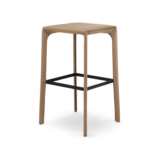 Der Saddle Barstool, gestaltet vom österreichischen Designstudio EOOS, überträgt das Prinzip des Saddle Chairs in eine barhohe Ausführung. Die straff aufgebaute Sitzschale aus Premium-Leder gibt dem Körper angenehmen Halt und sorgt auch bei längerer Nutzung für Komfort. Charakteristisch ist die präzise Nahtführung und die Reissverschlüsse, die die Form klar definieren und die handwerkliche Qualität sichtbar machen. Er eignet sich für Kücheninseln, Bartresen sowie für den Einsatz im gehobenen Objektbereich. Das schlanke Gestell unterstützt die ausgewogenen Proportionen und fügt sich selbstverständlich in unterschiedliche architektonische Kontexte ein.