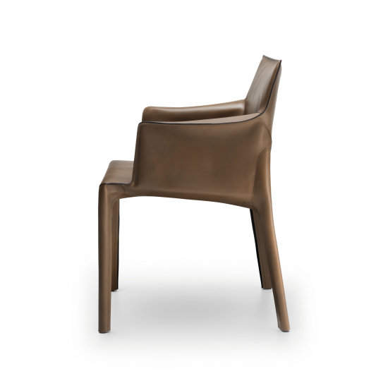Der Saddle Chair, gestaltet vom österreichischen Designstudio EOOS, ist ein Stuhl mit Vollbezug aus Leder. Die straff aufgebaute Sitzschale aus Premium-Leder mit weicher, grosszügiger Polsterung aus Kaltschaum, Watteabdeckung und einer Unterfederung mit Gurten sorgen für einen angenehm nachgebenden Sitzkomfort. Dies gibt dem Körper angenehmen Halt und sorgt auch bei längerer Nutzung für Komfort. Charakteristisch ist die präzise Nahtführung und die Reissverschlüsse, die die Form klar definieren und die handwerkliche Qualität sichtbar machen. Das schlanke Gestell unterstützt die ausgewogenen Proportionen und fügt sich selbstverständlich in unterschiedliche architektonische Kontexte ein.