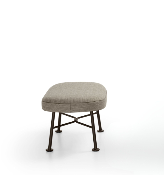 Der Shinzo Hocker von EOOS ist die konsequente Ergänzung zum Shinzo Lounge Chair. Die kompakte, ovale Polsterfläche in Kaltschaum-Sandwichaufbau mit Watteabdeckung liegt ruhig auf dem schlanken Stahlrohrgestell – die klare, zurückhaltende Form lässt sich dem Sessel selbstverständlich zur Seite stellen oder dient als zusätzlicher Sitz. Der Keder ist frei in den Sattelleder-Farben wählbar und ermöglicht eine abgestimmte oder bewusst kontrastierende Farbgebung. Das Untergestell aus Stahlrohr wird matt-pulverbeschichtet in bronze oder schwarz gefertigt.