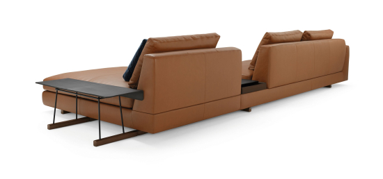 | Beistelltische Side Table | Tischplatte Sattelleder coffee oder schwarz; Kufen und Gestell oberflächengleich zum Polsterelement; über Steckverbindung verbunden |