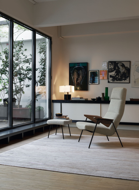 Der Votteler Hocker teilt Formensprache und Materialwahl mit den Sesseln der Votteler Chair Serie. Die Serie wurde 1956 von Arno Votteler für Walter Knoll entworfen. Das Stahlrohrgestell lässt sich auf den jeweiligen Sessel abstimmen. Der Hocker lässt sich als Fussstütze zum Sessel ebenso nutzen wie als eigenständiges Sitzmöbel in einem Wohn- oder Lesebereich. Ein zeitloser praktischer Hocker mit vielen Einsatzmöglichkeiten.