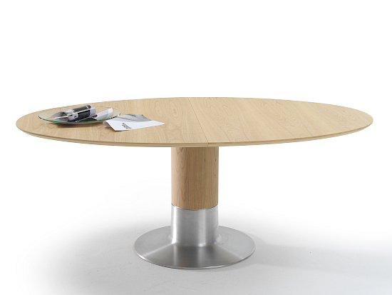 Die runden Formen verleihen diesem praktischen Ess- oder Konferenztisch Balance ein zeitloses Design. Die runde oder ellipsenförmige Tischplatte wird von einer robusten Säule getragen, so dass unter dem Tisch viel Beinfreiheit bleibt. Balance ist als fester Tisch und als ausziehbarer Tisch lieferbar und in zahlreichen Ausführungen erhältlich. Das Aussehen von Tischplatte, Säule und Fuss ist komplett individualisierbar.