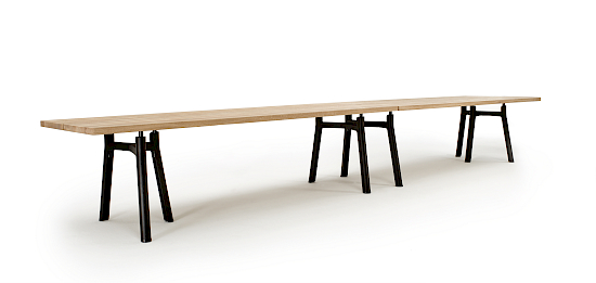 Mit dem grosszügigen Trestle Table Connected hat Jorre van Ast die funktionale Ausstrahlung eines Bocktischs auf ein Möbel für alle Lebensbereiche übertragen. Die Platte ruht auf jeweils dreibeinigen Aluminiumböcken, die manuell höhenverstellbar (71 bis 78 cm) sind. Der lange Trestle Connected kommt in den grossen Wohnräumen und kreativen Arbeitsbereichen hervorragend zur Geltung. Wie bei allen Modellen aus der Kollektion „Local Wood“ stammt auch das Eichenholz für die Tischplatte des Trestle Table aus der Umgebung des Arco-Sitzes im holländischen Winterswijk.