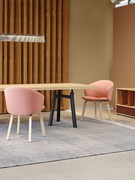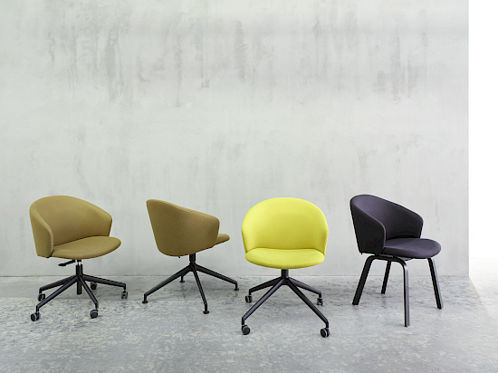 | Untergestelle | Kufen: Epoxid-Feinstruktur auf Stahl 4 Beine: Buche Laminat mit Eiche oder Nussbaum Oberbeschichtung 4-Bein-Zentralfuss (drehbar) auf Füsse: poliertes Aluminium, Epoxid-Feinstruktur auf Aluminium 4-Bein-Zentralfuss (fest) auf Rollen: poliertes Aluminium, Epoxid-Feinstruktur auf Aluminium 5-Bein-Zentralfuss (drehbar mit Gasfeder) auf Rollen: poliertes Aluminium, Epoxid-Feinstruktur auf Aluminium Bein konisch: Epoxid-Feinstruktur auf Stahl |