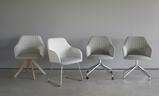 | Untergestellvarianten | 4 Beine (fest oder drehbar), Eiche massiv Kufengestell, Epoxid-Feintextur auf Stahl 4-Bein-Zentralfuss (drehbar) auf Füssen, poliertes Aluminium oder Epoxid-Feintextur auf Aluminium 4-Bein-Zentralfuss (fest) auf Rollen, poliertes Aluminium oder Epoxid-Feintextur auf Aluminium 5-Bein-Zentralfuss (drehbar, höhenverstellbar, mit Gasfeder und Tilt) auf Rollen, poliertes Aluminium oder Epoxid-Feintextur auf Aluminium |