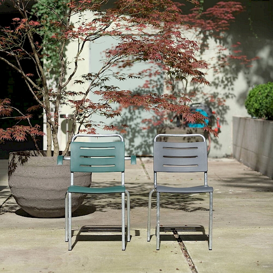 Der Poly-Gartenstuhl ist der kleine Bruder des klassischen Gartenstuhls. Dasselbe Untergestell aus feuerverzinktem Stahl, dafür bestehen Sitz- und Rückenschale aus robustem Polyurethan. In knalligem Rot, leuchtendem Gelb, dezentem Grau und gediegenem Grün setzt der Poly-Gartenstuhl frische Farbakzente. Beim Sitzkomfort macht er keine Kompromisse, und dazu ist er wetterbeständig, stapelbar und sehr unkompliziert.