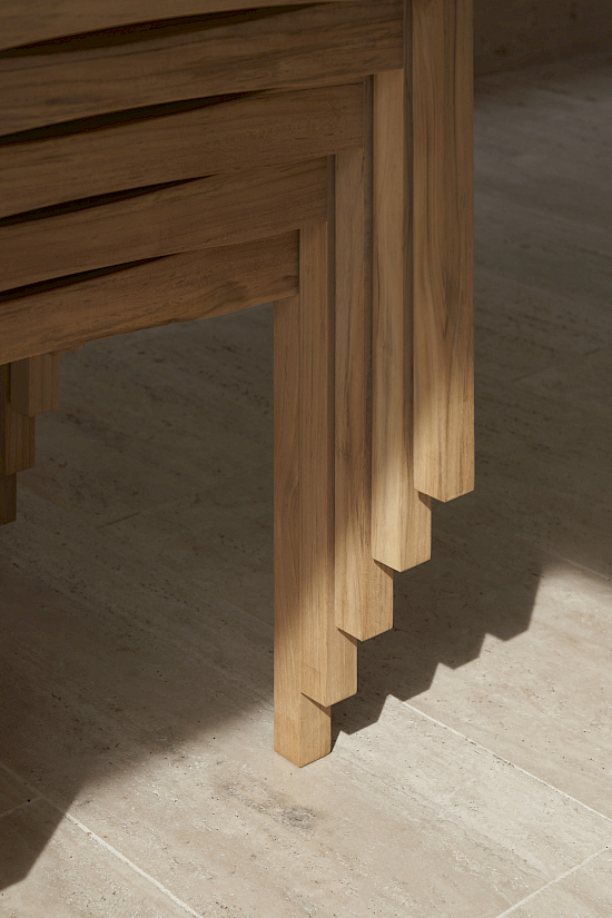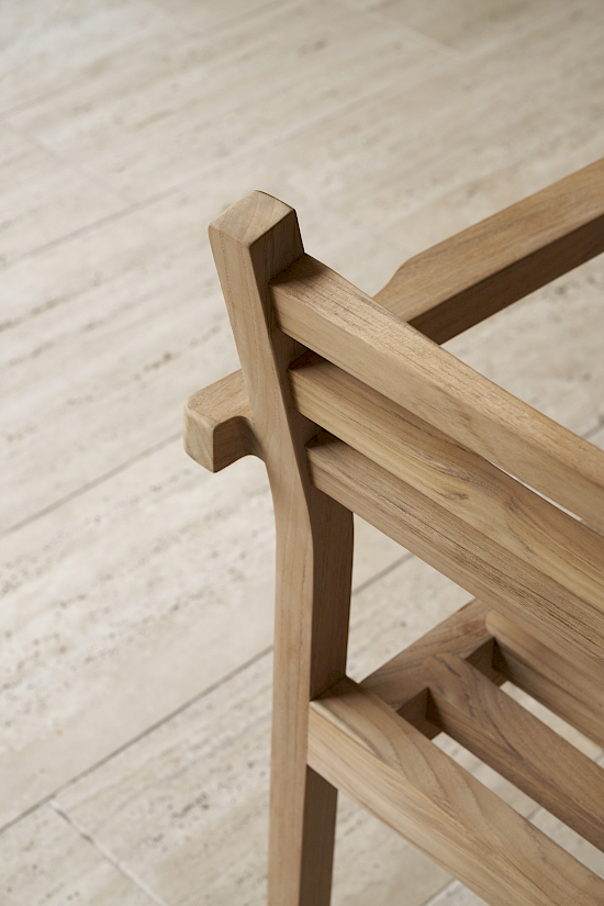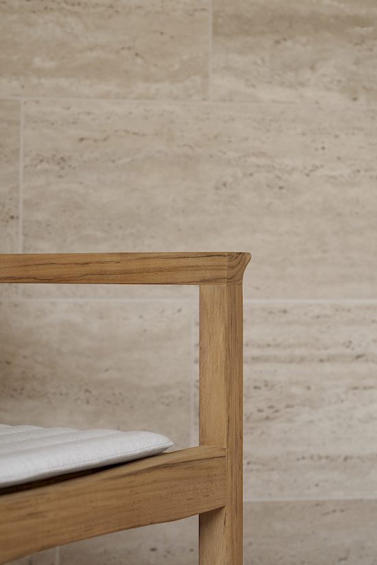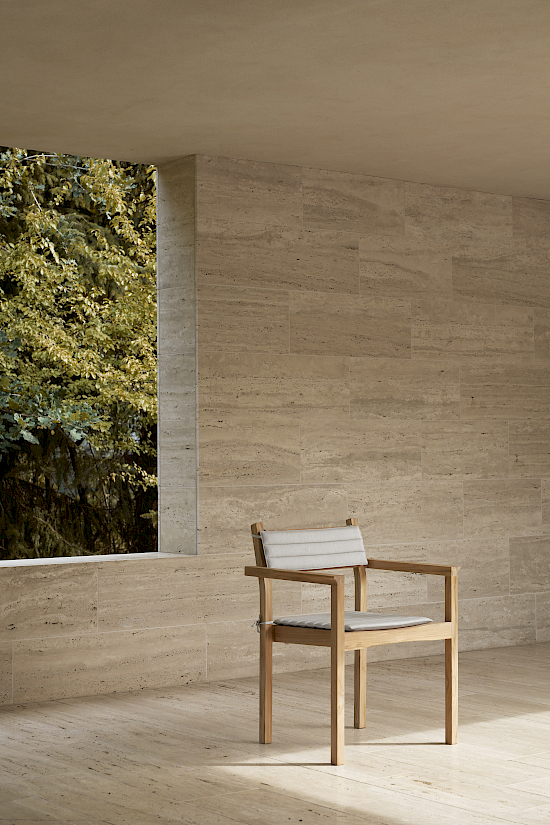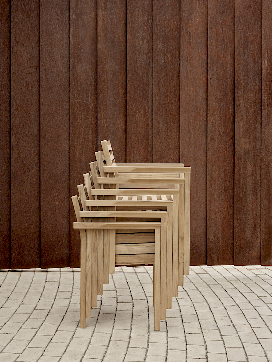 Der AH502 Outdoor Dining Chair wurde 2022 von Alfred Homann als Teil der AH Outdoor-Serie entworfen. Ihre Kennzeichen sind klare Linien, die sich auf elegante Weise mit weichen, abgerundeten Details verbinden. Armlehnen, Sitzfläche und Rückenlehne sind leicht geneigt, was für hohen Sitzkomfort sorgt. Der Stuhl lässt sich mit einem der Esstische aus unserer Outdoor-Möbelserie kombinieren. Der Dining Chair besteht aus FSC®-zertifiziertem Teakholz, ist stapelbar und auch ohne Armlehnen erhältlich. Sitzkissen sind separat erhältlich.