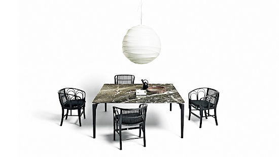 | Sitz- und Rückenlehne | Rattan-Kern natur oder anilingefärbt, schwarz, Endbehandlung mit transparentem Lack auf Wasser- oder Lösemittelbasis |