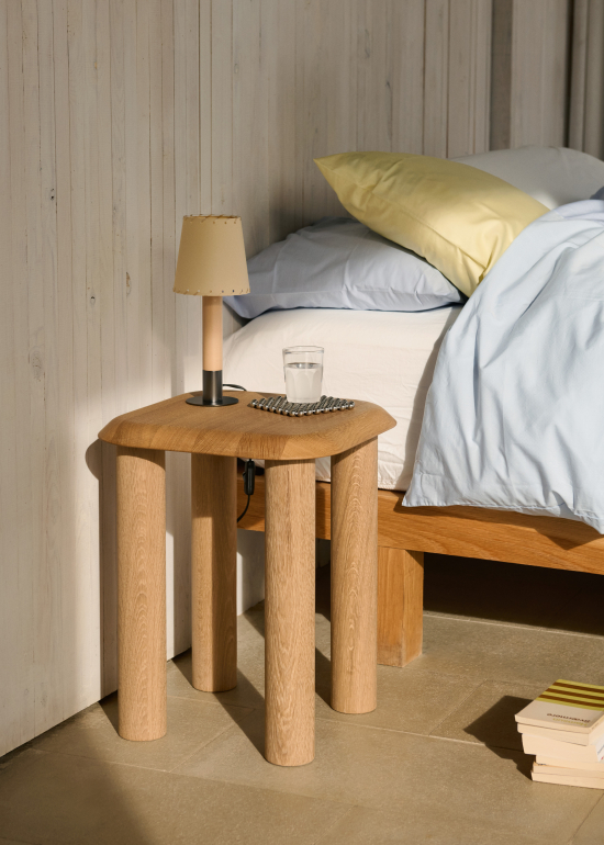 Der kleine, quadratische Islets Beistelltisch wurde von Maria Bruun im Jahr 2020 entworfer. Er ist ein minimalistischer kleiner Tisch, der skulpturale Klarheit mit natürlicher Wärme verbindet. Seine schmale, quadratische Tischplatte aus massiver Eiche ruht auf zylindrischen Beinen, die Stabilität und eine leichte, offene Präsenz bieten. Die Oberfläche ist mit natürlichem Öl behandelt, was die organische Textur des Holzes betont und eine langlebige Patina entstehen lässt. Ideal für moderne Schlafzimmer, Eingangsbereiche oder Lounges, passt er sich nahtlos an, ohne den Raum zu überladen. Bruun's Ansatz, Details auf das Nötigste zu reduzieren, schafft ein Möbelstück, das Funktionalität und ästhetische Präzision vereint. So wird der kleine Holztisch zum zeitlosen und praktischen Begleiter für die Präsentation von Gegenständen oder als Ablage für ein Getränk oder das Lieblingsbuch.