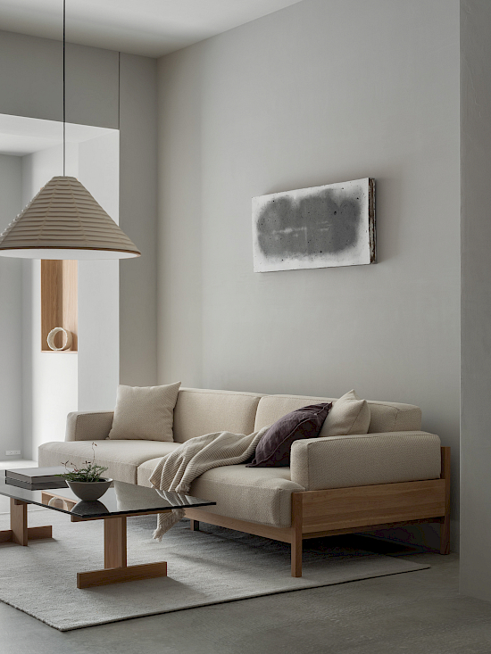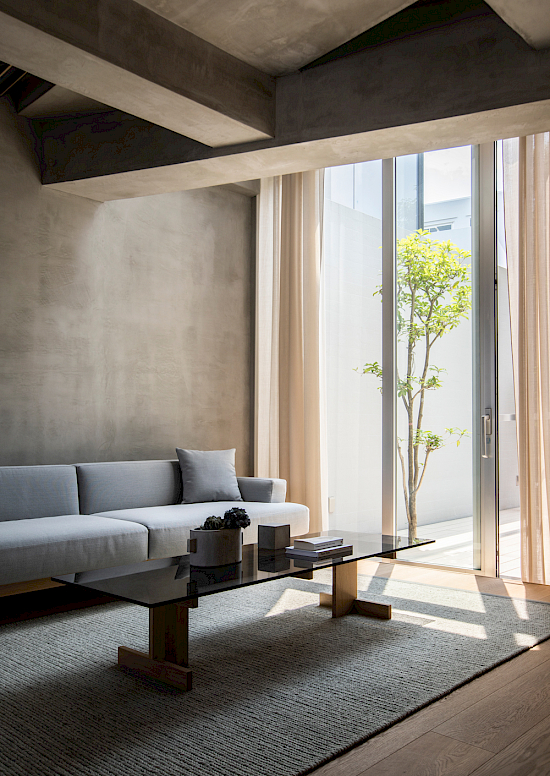 Die Kinuta Collection hat ihre Heimat in zwei der 36 Kinuta-Terrace-Wohnungen im Stadtteil Kinuta im Bezirk Setagaya in Tokio. Kinuta Terrace wurde ursprünglich 1991 mit einem integrierten Innenhof gebaut, der den Bewohnern die Vorteile eines Einfamilienhauses bietet. Das Team von Keiji Ashizawa Design hat die Innenräume in Zusammenarbeit mit Norm Architects renoviert und dabei neben einer Reihe von Einrichtungselementen 12 massgeschneiderte Möbelstücke entworfen, die die erste Kollektion von Karimoku Case bilden. Sie alle greifen auf die natürlichen Bezüge des angeschlossenen Innenhofs zurück und versuchen, die Natur so weit wie möglich einzubeziehen - sowohl in ihrer Formensprache als auch durch ihre Materialkompositionen.