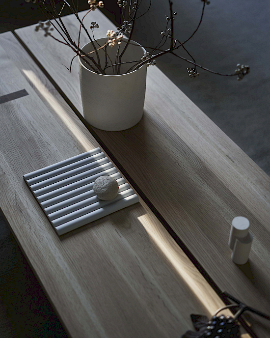 Die NF-Kollektion hat ihre Heimat in einem Wohnprojekt, das von Norman Foster entworfen wurde, um ein breites Spektrum an häuslichen Aktivitäten zu ermöglichen - vom Wohnen bis zum Arbeiten mit Räumen für private Studien. Norman Foster hat für dieses Wohnprojekt acht massgeschneiderte Möbelstücke entworfen, die die siebte Kollektion von Karimoku Case bilden.