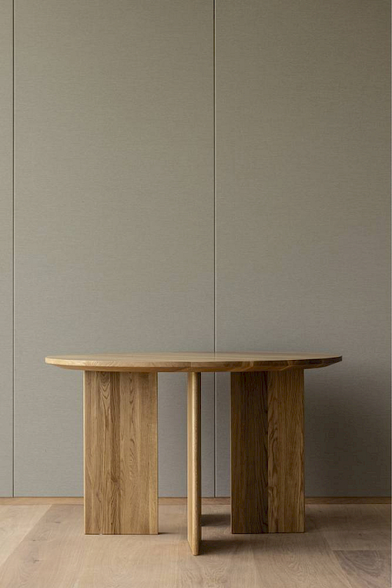 Dieser runde Esstisch basiert auf dem Design von A-DT02 | Dining Table, angepasst an die europäische Gastfreundschaft und Kultur. Die Form der Beine und ihr Befestigungswinkel sind ebenfalls von A-DT02 abgeleitet. Die optische Leichtigkeit durch den Verzicht auf eine Schürze ermöglicht die Vielseitigkeit des Tisches, der an vielen Orten, auch im Gastgewerbe, eingesetzt werden kann.