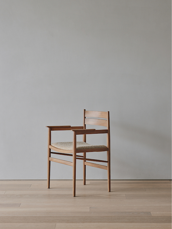 Das Design des N-DC04 Dining Chair entspringt der Idee, einen Holzstuhl mit einem geradlinigen Ausdruck zu schaffen, der dennoch die handwerklichen und hochtechnologischen Qualitäten beibehält, die Karimoku seit Jahrzehnten perfektioniert hat. Während der Stuhl hauptsächlich aus geraden Elementen besteht, wurde eine einzelne abgewinkelte Strebe hinzugefügt, um dem Stuhl eine Richtung und einen Charakter zu geben - so dass sich das Möbel mit seinem klaren und modernen Ausdruck für eine Vielzahl von Innenräumen eignet.