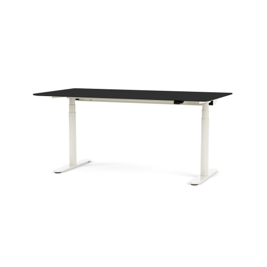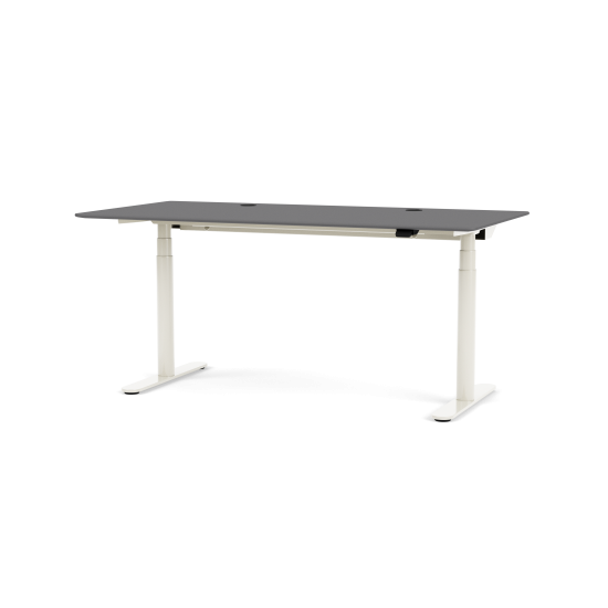 Der Schreibtisch HiLow 3 in der Breite von 160 cm ist ideal für kleine Heimbüros geeignet und ermöglicht einen gesunden Wechsel zwischen der Arbeit im Sitzen und Stehen. Die Tischplatte besteht aus Mikrolaminat in der Farbe Snow und der Rahmen ist als Aluminium-Ausführung sowie in den Lackfarben Black oder Snow erhältlich. Die Tischplatte ist mit zwei weissen Kabeltüllen ausgestattet, die 35 cm von der linken und rechten Endkante und 13,5 cm von der hinteren Kante entfernt sind. Eine weisse Kabelrinne ist im Lieferumfang enthalten. Die Kanten der Tischplattenenden sind gerade und nicht wie andere Tischplatten von Montana abgeschrägt. Hierdurch soll Platz für den Rahmen geschaffen werden. Der höhenverstellbare Schreibtisch ist in verschiedenen Farben erhältlich und es können Komponenten ausgewählt werden, die in der Tischplatte montiert werden können.
