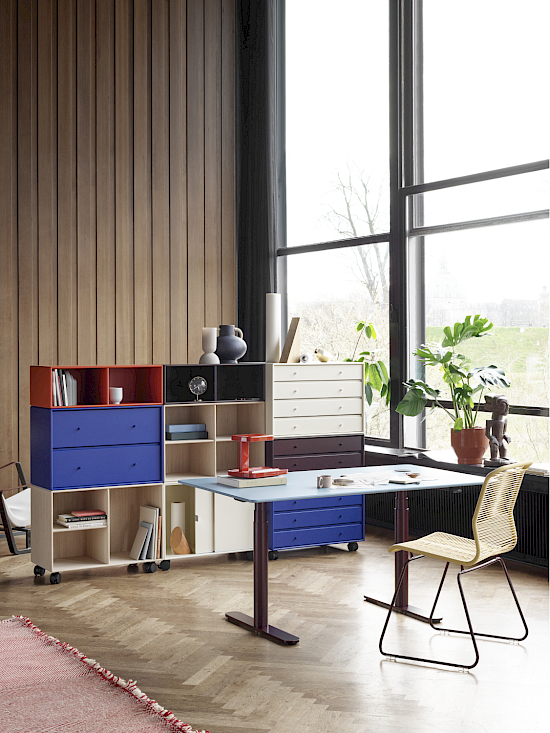 Der HiLow 3 Tisch hat ein klares Design und ist ein vielseitiger Tisch für Büroumgebungen oder das Homeoffice. Er ermöglicht einen einfachen Wechsel zwischen Sitzen und Stehen. HiLow 3 hat ein rechteckiges Beinprofil und ist in 7 Grössen erhältlich. Der Fussausleger besteht zu 30% aus Polyamidglas PA6 (wiederverwendetes Material). Die Tischplatte weist das klassische abgerundete Montana-Kantenprodil auf – nur die kleinste Grösse von 120 cm hat an den Seiten eine gerade, 90º Kante.