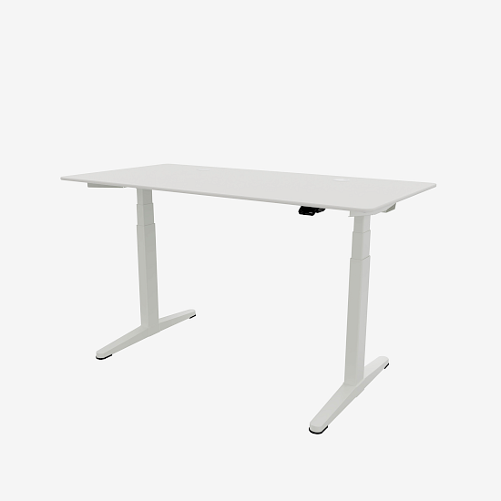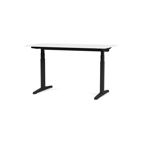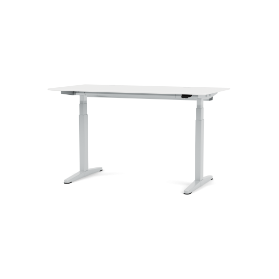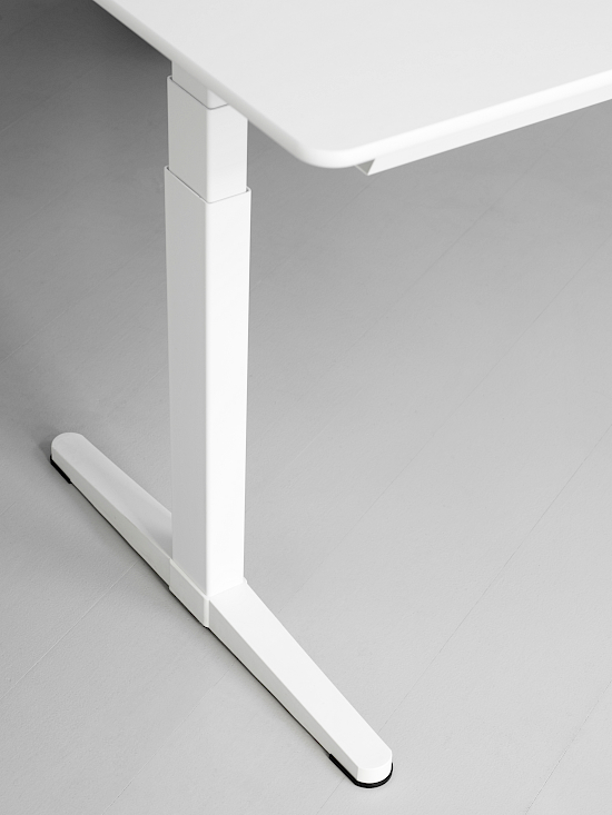 Der Schreibtisch HiLow 3 in der Breite von 140 cm ist ideal für kleine Heimbüros geeignet und ermöglicht einen gesunden Wechsel zwischen der Arbeit im Sitzen und Stehen. Die Tischplatte besteht aus Mikrolaminat in der Farbe Snow und der Rahmen ist als Aluminium-Ausführung sowie in den Lackfarben Black oder Snow erhältlich. Die Tischplatte ist mit zwei weissen Kabeltüllen ausgestattet, die 35 cm von der linken und rechten Endkante und 13,5 cm von der hinteren Kante entfernt sind. Eine weisse Kabelrinne ist im Lieferumfang enthalten. Die Kanten der Tischplattenenden sind wie andere Tischplatten von Montana abgeschrägt. Hierdurch soll Platz für den Rahmen geschaffen werden. Der höhenverstellbare Schreibtisch ist in verschiedenen Farben erhältlich und es können Komponenten ausgewählt werden, die in der Tischplatte montiert werden können.