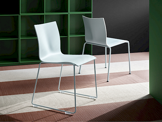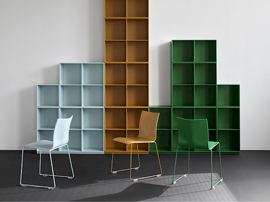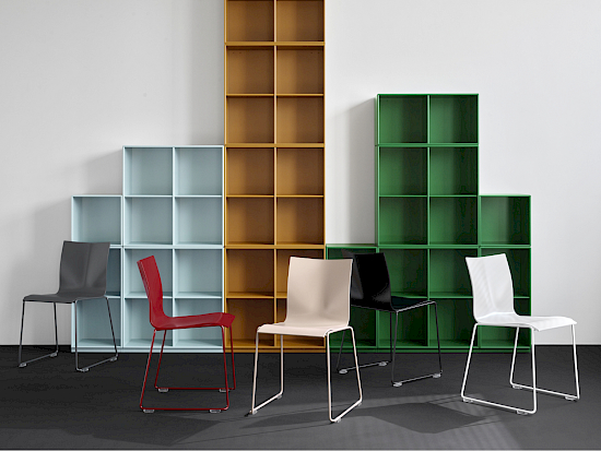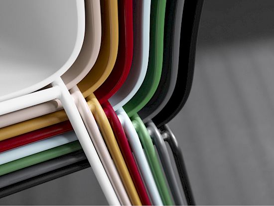 Für die Chairik-Serie bietet Montana Zubehör wie Stapel-Trolleys, Transport-Trolleys, Schreibunterlagen, abnehmbare Verbindungsvorrichtungen, Aufhängungen und Gleiter mit Füssen.