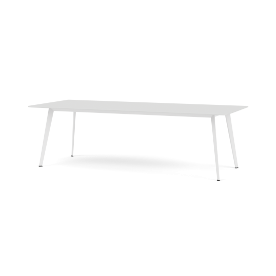 Der JW Table ist ein grosser und rechteckiger Tisch, der sowohl für Kantinen, Aufenthaltsräume als auch berufliche Besprechungs- oder Konferenzräume geeignet ist. Mit seiner klaren und eleganten Ausstrahlung fügt er sich auch perfekt in ein Esszimmer ein. Er hat eine Länge von 240 cm, eine Breite von 100 cm und ist in 74 oder 73 cm Tischhöhe erhältlich. Er ist leicht und schlank, aber dennoch stabil. Mit dem Rahmen unter der Tischplatte und den leicht nach aussen abgewinkelten dreieckigen Beinen bietet der zeitlose Tisch ein Höchstmass an Beinraum. Der JW-Table ist mit einer Tischplatte aus acht verschiedenen Materialien erhältlich: Snow-Silk-Laminat, Linoleum in den Farben Black und New Nordic, Furnier in White Oak, Burned Oak und Black Oak sowie in Solid Douglas und Solid Oak. Neu ist auch eine rote Tischplatte in Linoleum in der Farbe Salsa verfügbar.