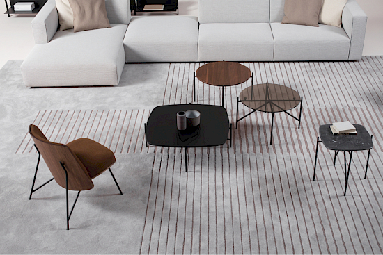 Der Beistelltisch Tinker folgt den gestalterischen Details der Metallkonstruktion des gleichnamigen Sessels. Es ist ein System aus eleganten Beistelltischen in unterschiedlichen Höhen, die einzeln oder in einer Gruppe verwendet werden können und sich gegenseitig ergänzen. Diese Funktion ihrer Clusterung bietet vielfältige Anwendungsmöglichkeiten in unterschiedlichen Innenraumsituationen. Die in Glas oder Holz erhältliche Tischplatte wird auf eine Metallkonstruktion gelegt.