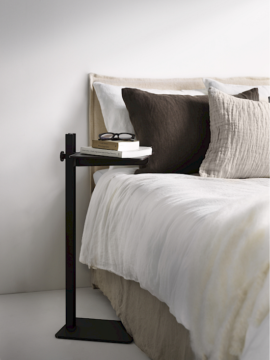 Der Museum Sidetable von String Furniture ist ein höhenverstellbarer Beistelltisch, der von TAF Studio für die Museum-Serie entworfen wurde. Ursprünglich wurde er für das renovierte Nationalmuseum in Stockholm entwickelt, wo er als Teil der Inneneinrichtung dient. Der Tisch kombiniert skandinavisches, minimalistisches Design mit hoher Funktionalität und Vielseitigkeit. Er ist schlank und robust, mit einem Bein, das an industrielle Stahlträger erinnert und seitlich angeordnet ist, um den Tisch leicht über Sofas oder Betten zu schieben.