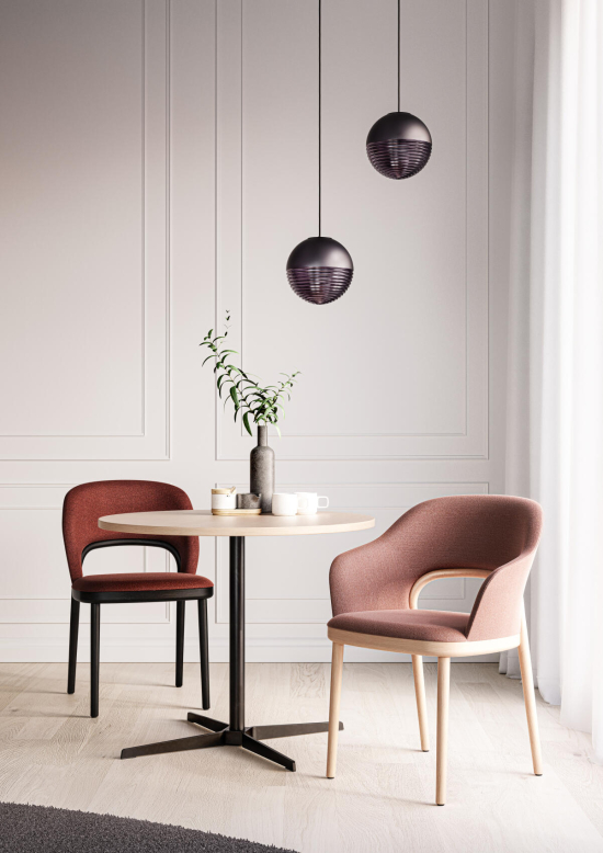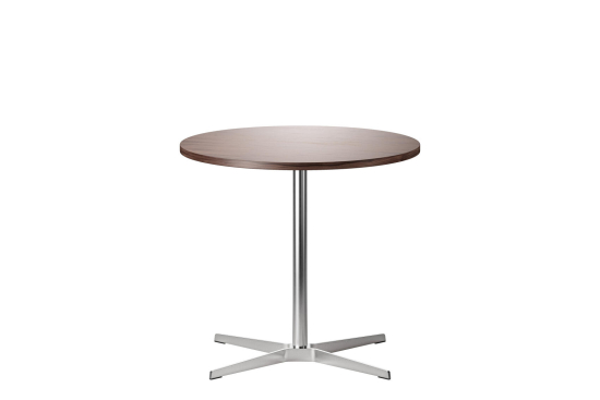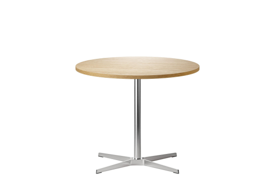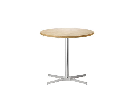 Der 1818 Tisch, entworfen von Formstelle (Claudia Kleine und Jörg Kürschner) für Thonet, ist ein ruhiger, aber selbstbewusster Tisch. Die runde Platte aus Holz mit Echtholzfurnier oder Laminat ruht auf einem schlanken Kreuzfuss aus Flachstahl, der gebürstet oder schwarz erhältlich ist. Die leichte Optik des Tisches machen ihn ideal für private Küchen, öffentiche Räume, Kantinen, Restaurants oder Cafés. Die Designer haben ihn bewusst unaufdringlich gehalten, damit er sich gut mit anderen Möbeln verträgt und den Raum nicht dominiert, sondern einfach nützlich da sein soll. Thonet fertigt ihn mit Materialien, die langlebig sind und eine natürliche Oberfläche entwickeln.