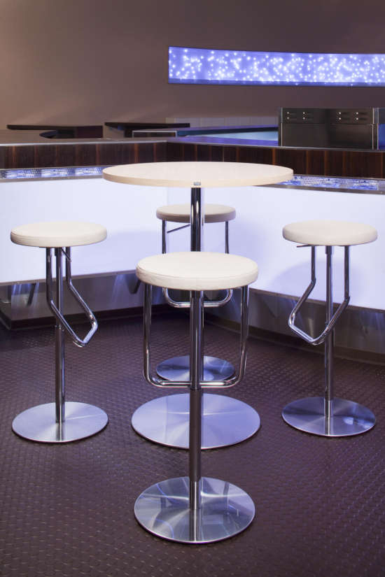 | Gestell | Bodenplatte: Gewichtsplatte 10 mm Stahl, schwarz oberflächenbeschichtet mit Abdeckplatte Ø 55 cm aus Stahlblech, Edelstahl, schwarz oder weiss Säule: einsäulig, Rundrohr 70 x 2 mm |