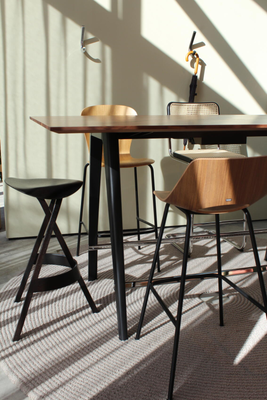 Mit der Wiederaufnahme der Stuhlserie S 661 wurde ein preisgekröntes Design von Günter Eberle aus den frühen Fünfzigerjahren in zahlreichen Ausführungen neu aufgelegt. Dank seiner Vielseitigkeit und seines effizienten Umgangs mit Material ist der Allrounder in Essbereich und Küche, Wohnzimmer oder Homeoffice genauso wie in öffentlichen Räumen wie Restaurants oder Wartebereichen einsetzbar. Seine Formholz-Sitzschale lebt von der Schönheit des natürlichen Materials und begeistert in elegantem Nussbaum, warm anmutender Eiche, Buche natur oder gebeizt. Das Stahlrohrgestell ist wahlweise verchromt oder pulverbeschichtet. Die gemaserte Holzoberfläche und die weichen Rundungen lassen den Barstuhl S 661 H trotz formaler Reduktion und minimalem Materialeinsatz wohnlich wirken und verleihen ihm eine besondere Präsenz im Raum. Der Barhocker vereint eine klare Linienführung mit einer präzisen Kontur. Er ist optional mit gepolstertem Sitz erhältlich. Erweitert wird das Programm durch die Drehstuhlvarianten S 661 Atelier (DR).
