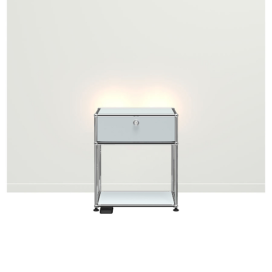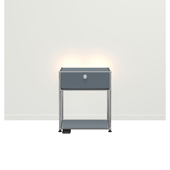 Das USM Haller Beistellmöbel QS M18 überzeugt mit dimmbarem Licht und einer Klapptür. Erst durch Beistellmöbel wird Ihre Einrichtung vollständig. Beistellmöbel geben dem Wohnzimmer oder Eingangsbereich das gewisse Etwas oder werden zum praktischen Stauraum für Wecker, Brille und Bücher im Schlafzimmer. Das nach hinten gerichtete dimmbare LED Licht sorgt für eine angenehme Lichtatmosphäre. Das Beistellmöbel QS M18 ist in 14 verschiedenen USM-Farben und neu in der Trendfarbe Olivegrün erhältlich. Damit passt das minimalistisch zeitlose Design des Beistellmöbels perfekt zu jedem ganz individuellen Stil.