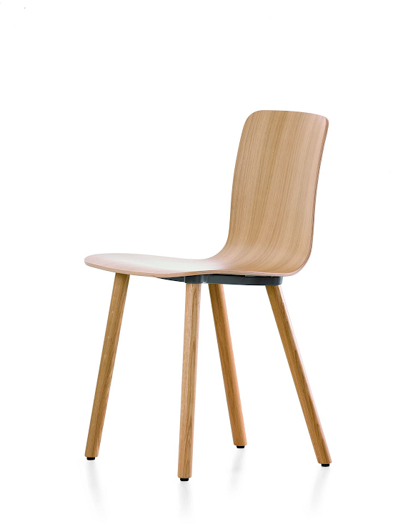 HAL ist Jasper Morrisons Interpretation eines Schalenstuhls in der Tradition des Plastic Chair von Charles und Ray Eames, der dank verschiedener Untergestelle vielseitig eingesetzt werden kann – vom Esstisch bis zum Besprechungsraum, von der Bar bis zum Auditorium. Die Schalenvariante HAL Ply ist aus Schichtholz gefertigt. HAL Ply Wood ist ein Holzstuhl mit einer robusten Verbindungsplatte unter der Holz-Sitzschale. Der Entwurf von Jasper Morrison verbindet eine bequeme Schale mit einem Untergestell aus vier markanten Holzbeinen. Sitz und Stuhlbeine gibt es in unterschiedlichen, jeweils aufeinander abgestimmten Hölzern. HAL Ply Wood kann auch zusammen mit anderen Stühlen der grossen HAL-Familie eingesetzt werden.