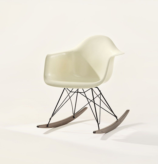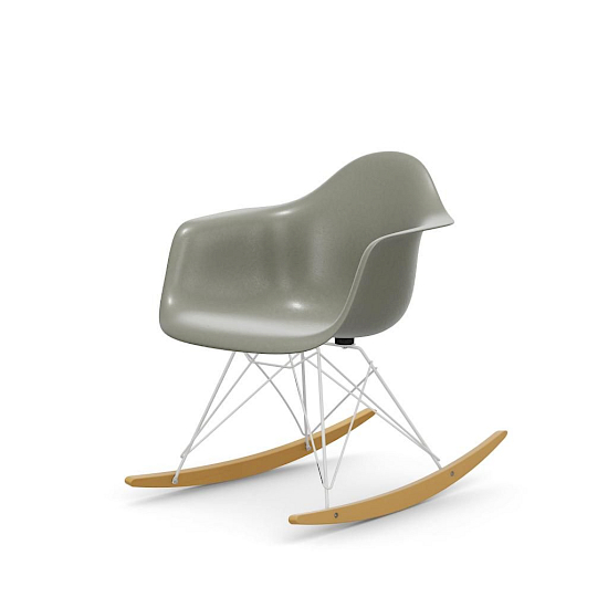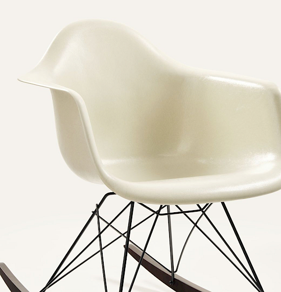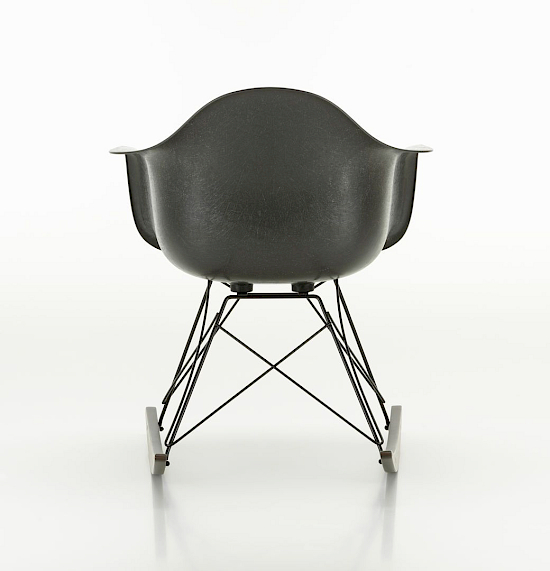 Mit dem revolutionären Entwurf begründeten Charles und Ray Eames auch den heute weit verbreiteten Möbeltypus des multifunktionalen Stuhl, dessen Schale sich mit verschiedenen Untergestellen kombinieren lässt. Aus der grossen Stuhlfamilie ist ein Modell schon immer besonders hervorgestochen: der Rocking Armchair Rod Base (RAR). Trotz seiner kompakten Dimensionen bietet dieser Schaukelstuhl auch grossgewachsenen Menschen angenehmen Komfort. In der Ausführung Fiberglass Chair zeigt die organisch geformte Armschale die für Fiberglas typische lebendige Optik. Die Faszination des Materials liegt in der unregelmässigen Oberfläche, die dank der deutlich sichtbaren Fasern fast natürlich wirkt. Um diese einzigartigen Materialeigenschaften ideal zur Geltung zu bringen, ist der Fiberglass Chair RAR nicht mit Vollpolsterung erhältlich.