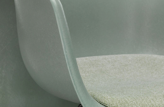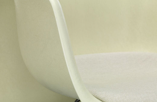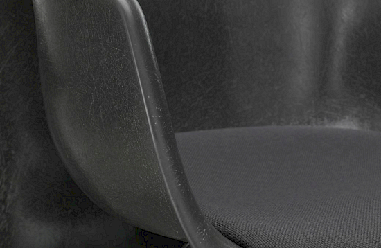 durchgefärbtes, glasfaserverstärktes Polyester (Fiberglas), alle Modelle mit Sitzpolster (an Sitzschale verschraubt) oder mit Vollpolster erhältlich Wie schon bei den frühesten Modellen sind die Fiberglasschalen bis heute in einigen Farben leicht transparent. |