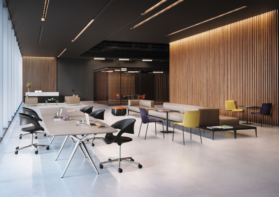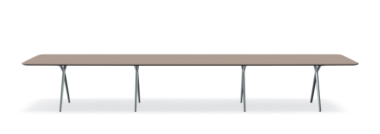 Der Conference-X, entworfen von EOOS für Walter Knoll, ist ein modulares Tischsystem, das sich wechselnden Raumanforderungen anpasst. Die patentierte Easy Handle Verbindungstechnik ermöglicht eine werkzeuglose Montage: Die vier Einzelgriffe jedes Fusses lassen sich separat verriegeln, Platten und Beine sind schnell und ohne Werkzeug verbunden. Tischplatten sind in zwei Ausführungen erhältlich – Basic mit gerader Kante und Advanced mit abgerundeter Kante, jeweils in zahlreichen Oberflächen. Jede Platte ist für Kabelnetz, USB-Power-Port und Knieblende vorbereitet.